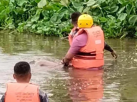 झापा । झापाको दमक नगरपालीका वडा नम्बर ८ स्थित रतुवा खोलामा घुगी टिप्न पसेका एक ज ...
