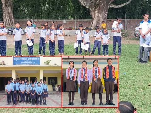 बिर्तामोड । झापाको एक संस्थागत बिद्यालयले सामुदायिक बिद्यालयमा आवश्यक सामाग्री ट ...