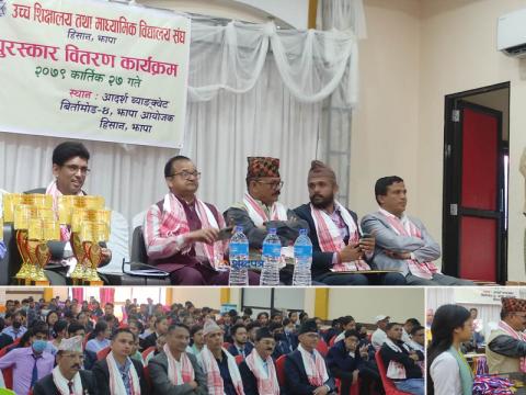 बिर्तामोड । उच्च शिक्षालय तथा माध्यमिक संघ (हिसान) झापाले २७ वटा बिद्यालयका ५४ ज ...
