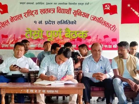 विराटनगर ।अखिल (क्रान्तिकारी) ले विद्यार्थीसँग अखिल (क्रान्तिकारी) भन्ने नाराका साथ त ...