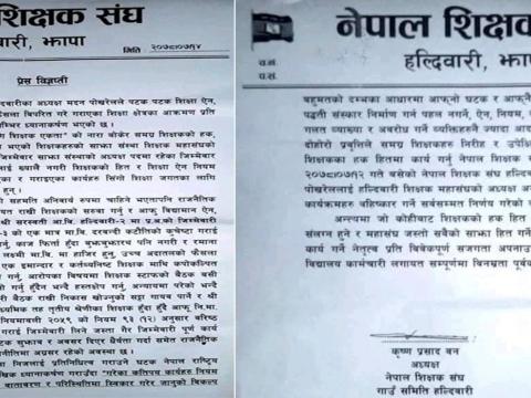 सुदिप गिरी हल्दिबारी । नेपाल शिक्षक महासंघ हल्दिबारीका अध्यक्ष मदन पो ...