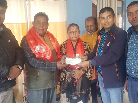 बिर्तामोड।शिक्षासेवी तथा सामाजिक व्यक्तित्व जयनारायण ढुंगाना र अञ्जना ढुंगानाले पत्रक ...