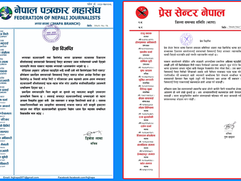 झापा । नेपाल पत्रकार महासंघ झापा र प्रेस सेन्टर नेपाल झापाको समाचारको बिषयलाई लि ...