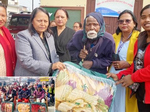 बिर्तामोड । झापाको बिर्तामोड नगरपालिकाले विपन्न जेष्ठ नागरिकहरुलाई न्यानो कपडा व ...