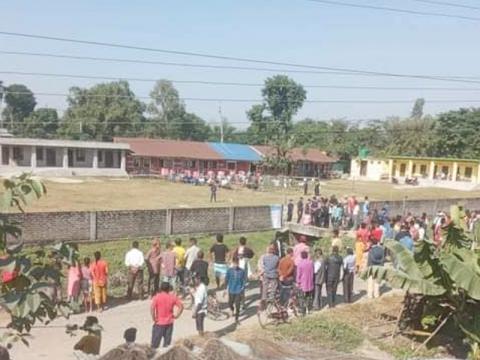 झापा । झापा गाउँपालिकाको एउटा मतदान केन्द्र स्थल परिसरभित्र अज्ञात समूहले सुतली ...