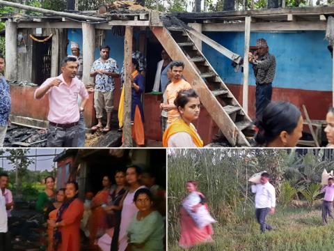 अर्जुनधारा । झापाको अर्जुनधारा नगरपालिका वडा नम्बर १ स्थित साधुटारमा भएको आगलागी ...