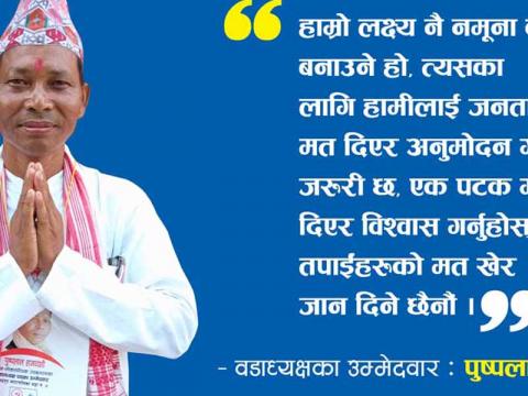 अर्जुनधारा । अर्जुनधारा नगरापालिकाका मेयर पदका आकांक्षी बलदेव गोम्देन तामाङले प्राबिध ...