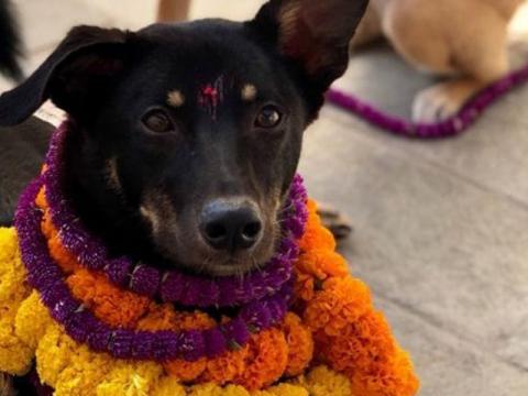 झापा । यमपञ्चकको दोस्रो दिन आज कुकुरलाई टीका, माला र मीठा खानेकुरा खुवाएर श्रद्ध ...