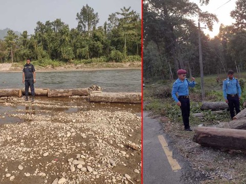 झापा । झापाको शिवसताक्षी नगरपालिका वडा नम्बर १० दोमुखास्थित कनकाई माईखोलाबाट काठ ...