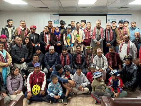 बिर्तामोड । झापाको बिर्तामोडमा क्यान्सर प्रभावितलाई सहयोगका लागि साइक्लिङ सम्बन ...