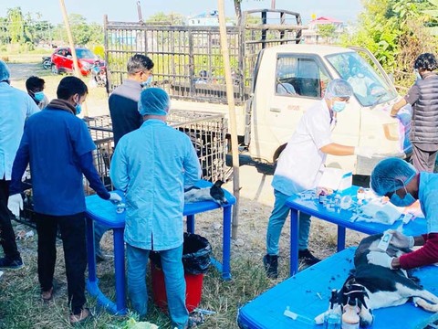 बिर्तामोड । झापा बिर्तामोड नगरपालिकाले आयोजना गरेको कुकुर बन्ध्याकरण शिविरमा एक ...