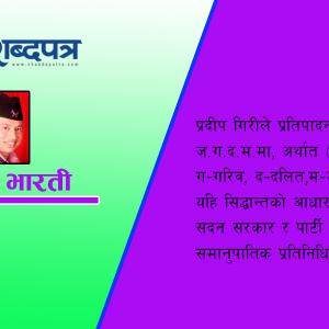 - संसारभरि विभिन्न कार्यक्रमहरू गरेर सामाजिक, आर्थिक लगायत विकासका अन्य धेरै आयामहरूमा नारीहरूको सक्रिय सहभागिता अनि नेतृत्वको प्रशंसा गरिन्छ । संसारमा लैङ्गिक समानता एउटा अभियान केवल लमतन्न नारा मात्र भएको छ, निकै विकसित भनिएका देशहरू पनि नारी उत्पीडन अनि असमानताका मुद्दाहरू लुकाएर बसिरहेका छन् । तथापि नेपालले भने यसपाला नारी समानतामा एउटा युगान्तकारी, गौरवशाली अनि संसारलाई नै उदाहरणीय कदम चालेर देखाइदिएको छ ।