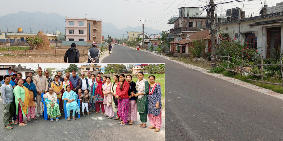 ‘बाटो बनाउन शुरुमा असहज भएपनि काम गर्दै जाँदा हुँदो रहेछ’ उनले भनिन् ‘काम सम्पन्न भएपछि सबैले राम्रो गर्नुभयो भन्ने प्रतिक्रिया दिइरहेका छन् ।’ नगरपालिकाको ७० प्रतिशत र स्थानीयबासीको ३० प्रतिशत लागत सहभागितामा २८ फिट चौडाइ रहेको सडकमा २४ फिट कालोपत्रे गरिएको छ । त्यस्तै सडकको दुवैतर्फ प्लम निर्माण गरिएको उपभोक्ता समिति अध्यक्ष रेवता चापागाईंले जानकारी दिइन् ।