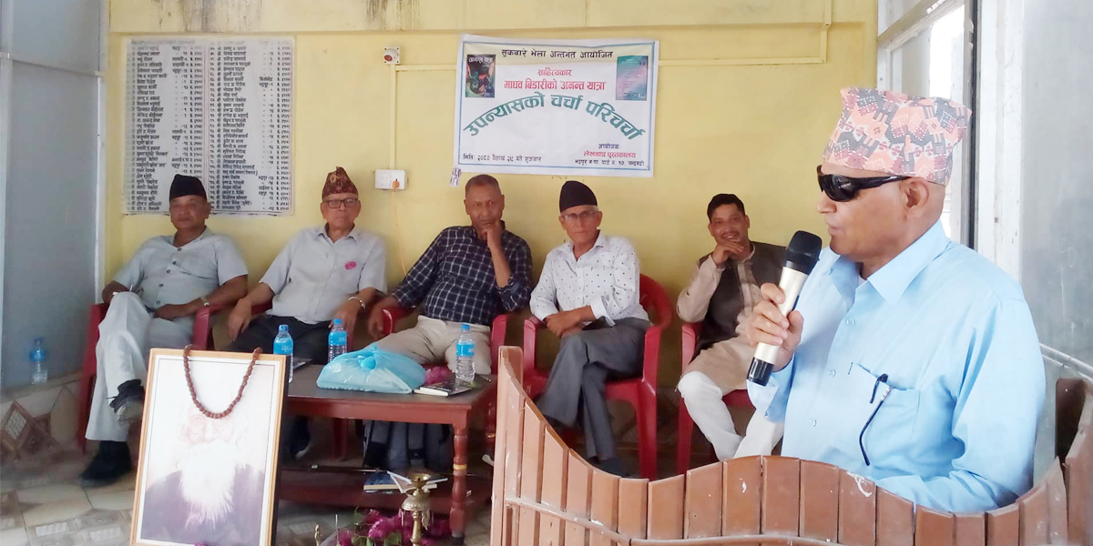 झापाको चन्द्रगढीस्थित लेखनाथ पुस्तकालयमा साहित्यकार माधव बिडारीको उपन्यास ‘अनन्त यात्राको चर्चा परिचर्चा’ कार्यक्रम सम्पन्न भएको छ । लेखनाथ पुस्तकालयले प्रत्येक महिनाको अन्तिम शुक्रबार गर्ने शुक्रबारे साहित्यिक भेला अन्तरगत उक्त कार्यक्रम सम्पन्न भएको हो ।