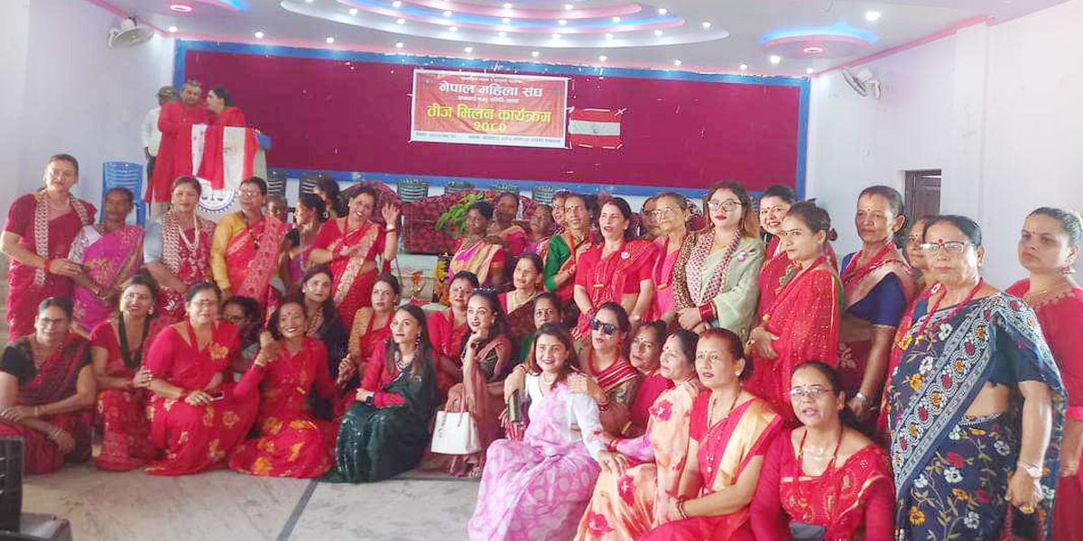नेपाल महिला संघ कनकाईको आयोजनामा तीजमिलन कार्यक्रम सम्पन्न भएको छ । कनकाई–३ स्थित सुरुङ्गामा शनिबार नेपाल महिला संघ कनकाई नगर सभापति रेनुका मैनालीको सभापतित्व एवं नेपाली काङ्ग्रेस कोशी प्रदेश सदस्य लक्की गणेशको प्रमुख आतिथ्यमा कार्यक्रम सम्पन्न भएको हो ।