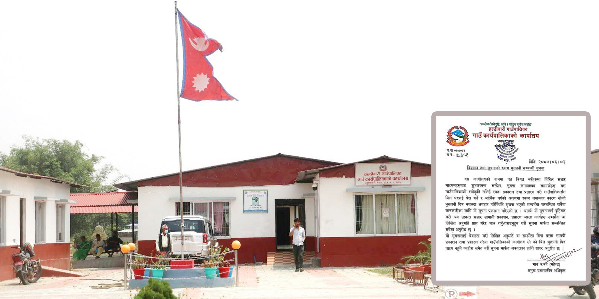 हल्दिबारी गाउँपालिकाले सञ्चार सामाग्री प्रकाशन तथा प्रसारण जस्ता कार्यहरु सम्झौता तथा लिखित अनुमति बिना गरेर मात्र गर्न आग्रह गरेको छ ।
