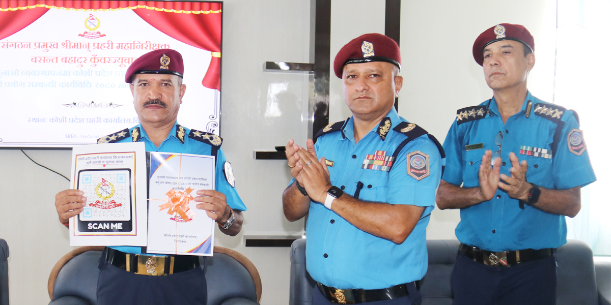 कोशी प्रदेश प्रहरी कार्यालय बिरानगरले गुनासो व्यवस्थापनको लागि क्यूआर कोर्ड प्रयोग सार्वजनिक गरेको छ । कोशी प्रदेश प्रहरी कार्यालय बिराटनगरमा मंगलबार एक कार्यक्रमका बिच संगठन प्रमुख प्रहरी महानिरीक्षक बसन्त बहादुर कुँवरले कोशी प्रदेश प्रहरीको क्यूआर कोर्डको प्रयोग सम्वन्धि कार्यविधि २०८० सार्वजनिक गरेका हुन् ।