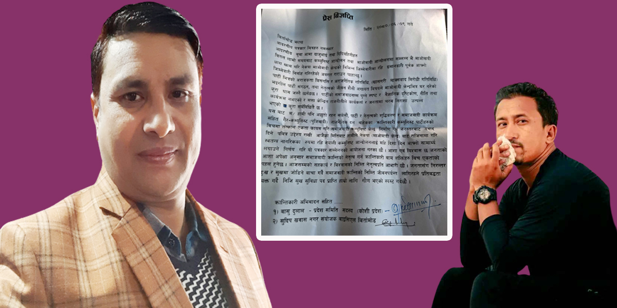 नेपाल कम्युनिष्ट पार्टी (माओवादी केन्द्र) का प्रदेश कमिटी सदस्य र वाइसिएल बिर्तामोड नगर संयोजकले पार्टी परित्याग गरेका छन् । पार्टीका कोशी प्रदेश कमिटी सदस्य बासु दुलाल र वाइसिएल बिर्तामोड नगर संयोजक सुदिप खवासले एक बिज्ञप्ती जारी गर्दै पार्टी परित्याग गरेको घोषणा गरेका हुन् । उनीहरुले मंगलबार संयुक्त रुपमा बिज्ञप्ती जारी गर्दै पार्टी परित्याग गरेको घोषणा गरेका छन् । बिगत लामो समयदेखि कम्युनिष्ट आन्दोलन तथा माओवादी आन्दोलनमा सम्लग्न भएर माओवादी धारा खास गरि नेकपा माओवादी केन्द्रको विभिन्न जिम्मेवारीमा रहि इमान्दारी पूर्वक आफ्नो जिम्मेवारी निर्वाह गरिसकेका उनीहरुले जारी गरेको बिज्ञप्तीमा उल्लेख छ ।