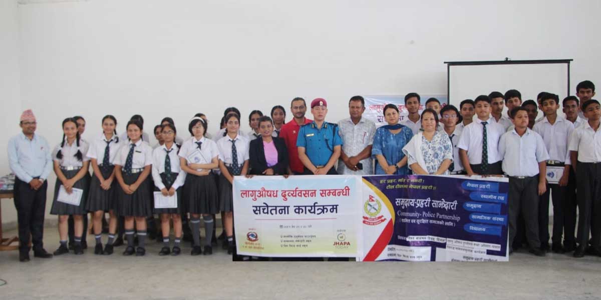 झापा बिर्तामोडको ग्रिन फिल्ड वर्ल्ड स्कुलमा कार्यशाला गर्दै दुई दिने लागुऔषध दुर्व्यसन सम्बन्धी सचेतना कार्यक्रम सम्पन्न भएको छ ।आज भएको कार्यक्रममा विद्यार्थीहरुलाई लागुऔषध दुर्व्यसनविरुद्ध र बालश्रमविरुद्ध सचेतना प्रशिक्षण दिइएको थियो ।पछिल्लो समय लागुऔषधका कारोबारी र प्रयोगकर्ता बढ्दै गएपछि विद्यालयस्तरबाटै सुधार ल्याउने उद्देश्यसाथ विद्यार्थी लक्षित सचेतना कार्यक्रम गरिएको हो ।