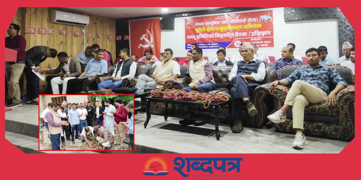 नेकपा (माओवादी केन्द्र) ले झापाको दमकमा पूर्वेली संगठन सुदृढीकरण अभियान अन्तरगत नगरको बिस्तारित बैंठक तथा प्रशिक्षण कार्यक्रम सम्पन्न गरेको छ । संगठन सुदृढीकरण अभियानसँगै फलफूलका बिरुवा रोपन तथा बितरणसमेत गरिएको थियो ।