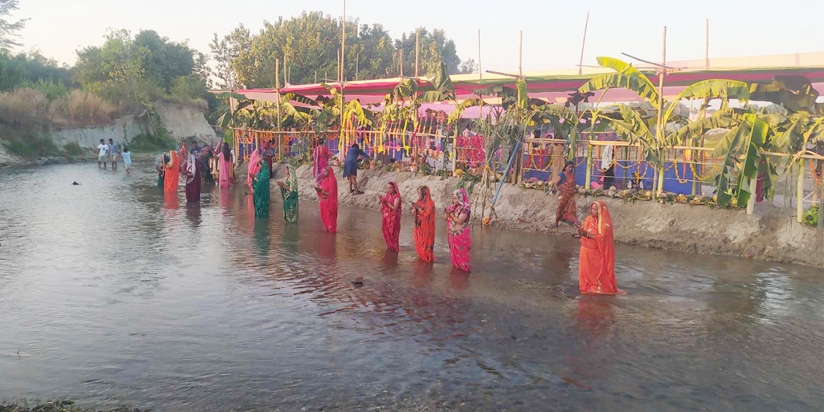 छठ पर्वको मुख्य दिन आज साँझ अस्ताउँदो सूर्यलाई पूजा आराधना गरी अर्घ दिइँदैछ । कार्तिक शुक्ल चतुर्थीदेखि सप्तमीसम्म मनाइने सूर्यदेवको आराधना, उपासना र पूजाको यो पर्व मङ्गलबारदेखि शुरु भएको थियो ।