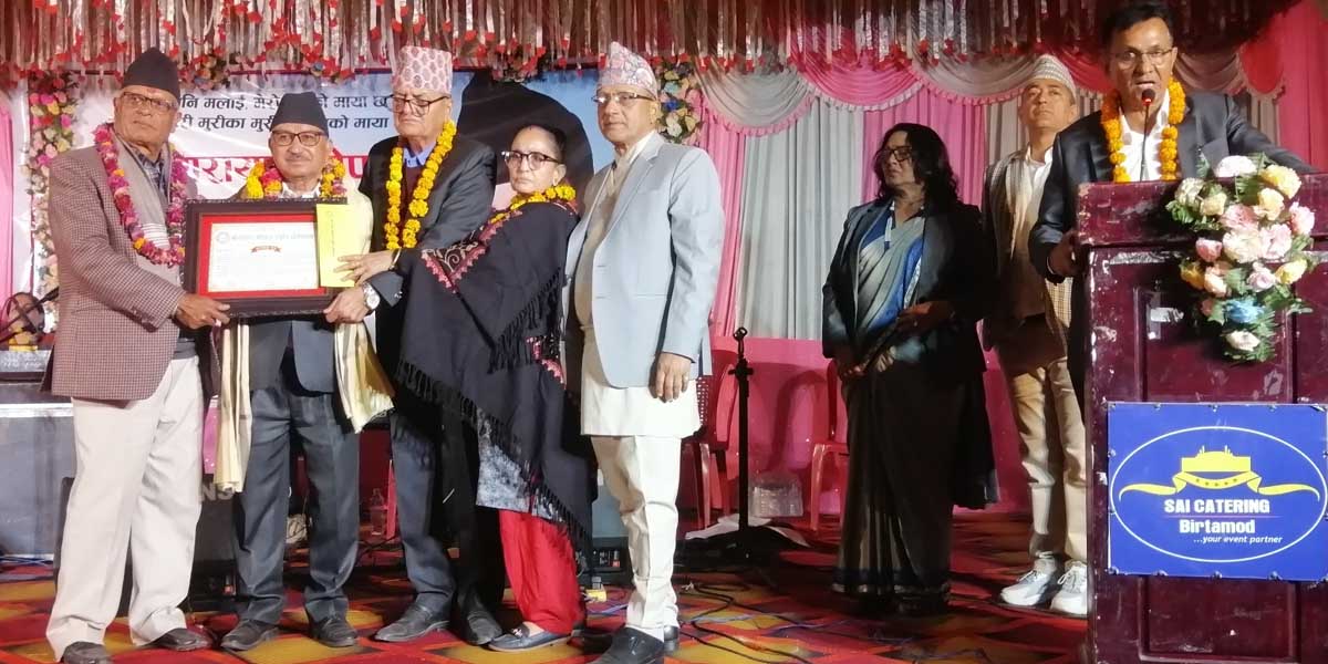 नारायण गोपाल स्मृति प्रतिष्ठान झापाले बिर्तामोड–३ सैनिकमोडमा आयोजना गरेको ३४ औं नारायण गोपाल स्मृति समारोह साँझ २०८१ मा शृष्टा एवम् विभिन्न ब्यक्तित्वलाई सम्मान गरिएको छ ।