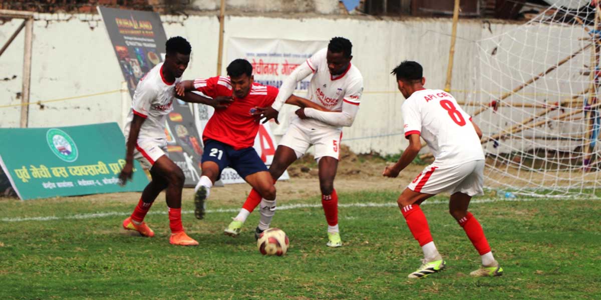 खेलको ३० औँ मिनेटमा मच्छिन्द्रले अग्रता लियो । पेनाल्टी एरियामा क्लियर हुन नसकेको बललाई विदेशी खेलाडी युसुफ मलिकले गोल गरेका हुन् । ४३ औं मिनेटमा मच्छिन्द्रले अग्रता दोब्बर बनायो । आदित्य शाक्यको क्रस पासमा एन्द्रेस नियाले गोल गरे । त्यसको १ मिनेट बित्न नपाउँदै युसुफ मलिकले मछिन्द्रका लागि अर्को गोल थपे । मैदानको मध्य भागबाट अगाडि बडाएको बललाई उनले सुन्दर गोल गरे पनि मच्छिन्द्रको जितका लागि यो गोल प्रयाप्त बन्न सकेन ।