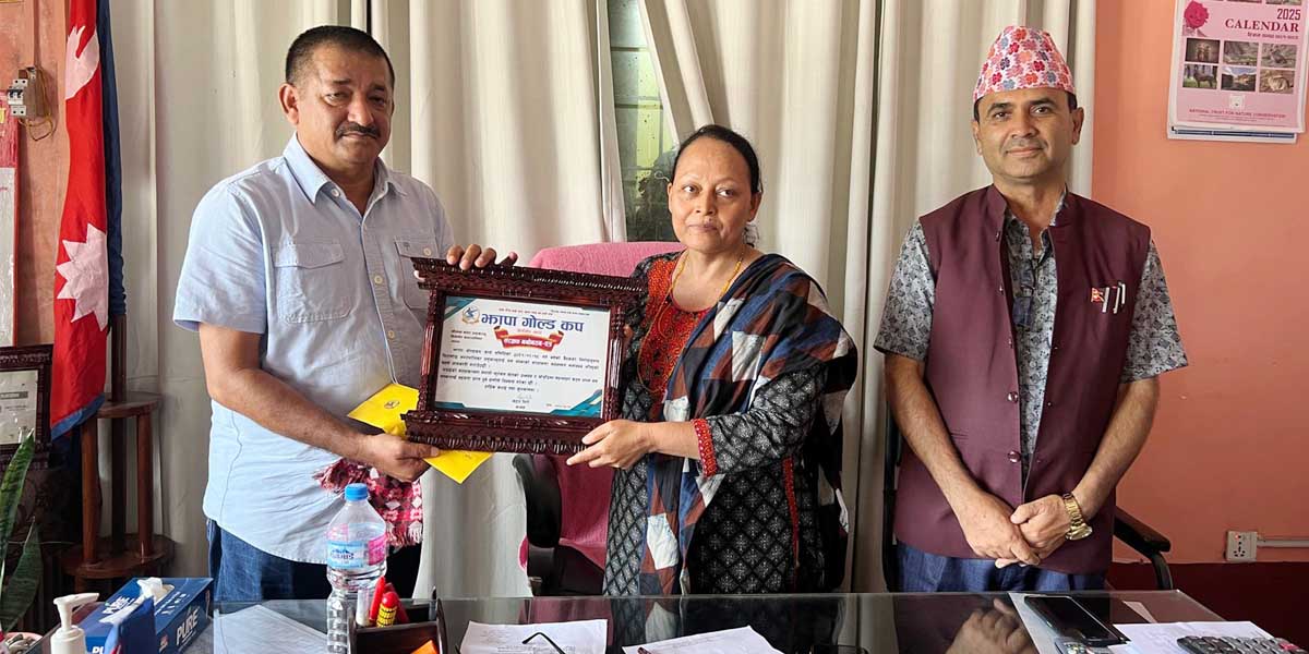 संरक्षकको रूपमा रहेका नगरप्रमुख पवित्र महतरा प्रसाई र उपप्रमुख नगेन्द्रप्रसाद संग्रौलालाई गोल्डकपले औपचारिक पत्र समेत प्रदान गरेको छ। नगर प्रमुखको कार्यकक्षमा आयोजित संक्षिप्त कार्यक्रमका बीच अध्यक्ष गिरीले प्रमुख र उप–प्रमुखलाई संरक्षकत्वको पत्र सम्मानसहित प्रदान गरेको हो।