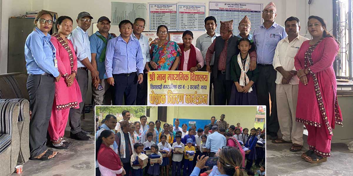 झापाको शिवसताक्षी नगरपालिका–३ पाराबारीको भानु माध्यमिक बिद्यालयमा अध्ययनरत बिद्यार्थीलाई पोशाक वितरण गरिएको छ । बिद्यालय ब्यवस्थापन समितिका अध्यक्ष गणेशबहादुर राईको अध्यक्षतामा साप्ताहिक कार्यक्रमको अवसर पारेर आज (शुक्रवार) पोशाक बितरण गरिएको हो ।